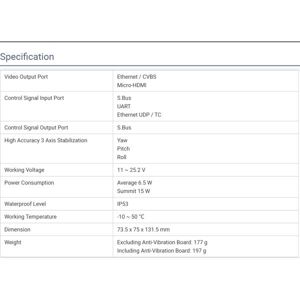 Technological advancements drive: With the progress of sensor technology, high-resolution optical sensors and thermal imaging sensors have been miniaturized and integrated. The ZT6 Mini Dual-sensor optical pod is equipped with a 640×512 resolution thermal imaging sensor and a 4K optical camera from Sony with a 1/2.8-inch sensor. Thanks to the development of these miniaturized high-resolution sensor technologies, this pod can achieve powerful imaging capabilities within a compact volume. At the same time, improvements in motor control technology and attitude stabilization algorithms enable the pod's gimbal to achieve 540-degree yaw-axis rotation and possess high-precision 3-axis stabilization, with an angle vibration range of ±0.01°.